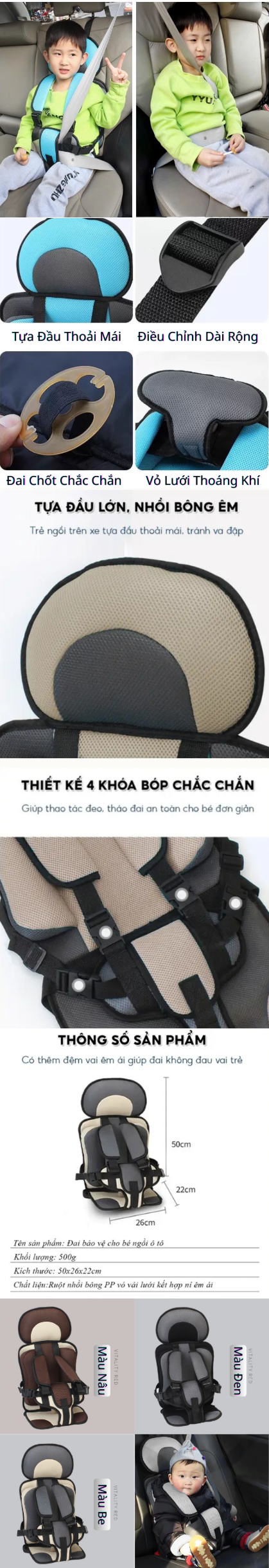 - Hệ thống đai an toàn thiết kế chắc chắn bảo vệ bé khỏi mọi rủi ro trên đường